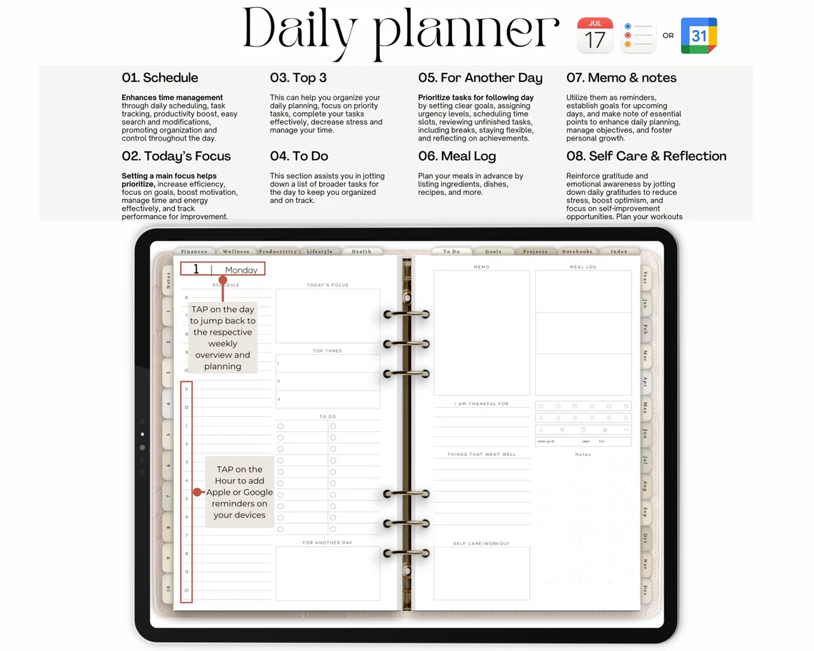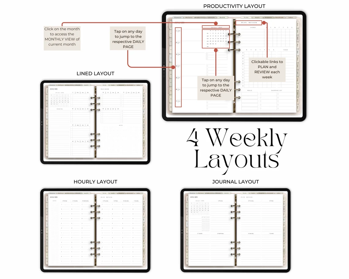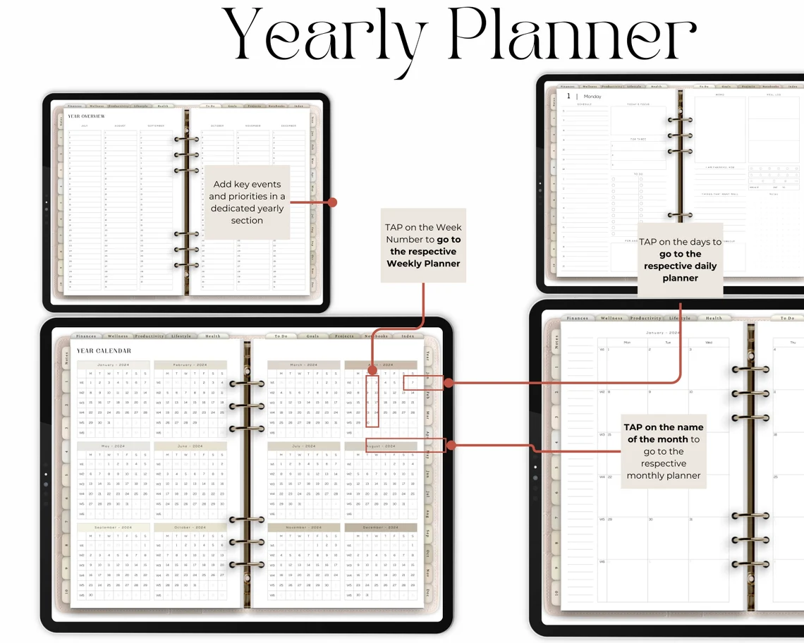 Note: To utilize the functionalities of this digital planner, you will need a PDF annotation app such as Goodnotes, Notability on iPad or Penly or Xodo on Android.