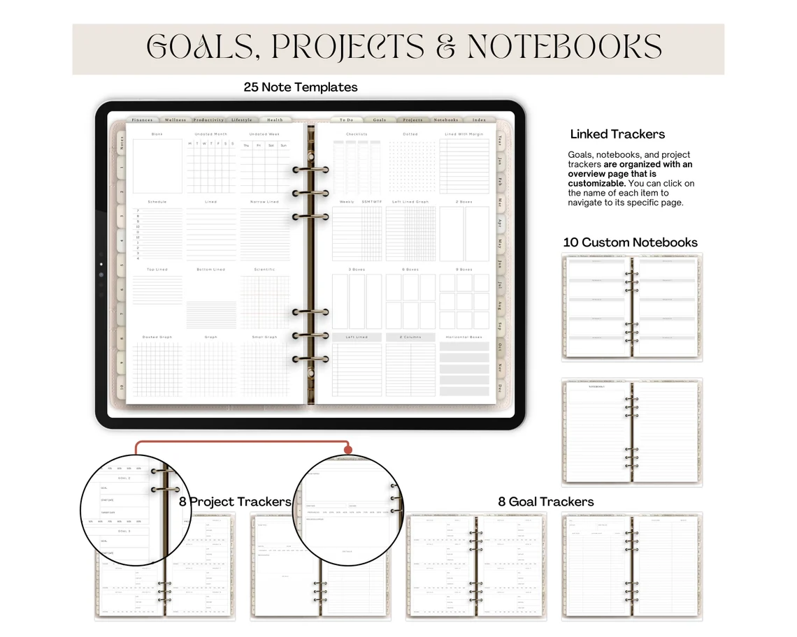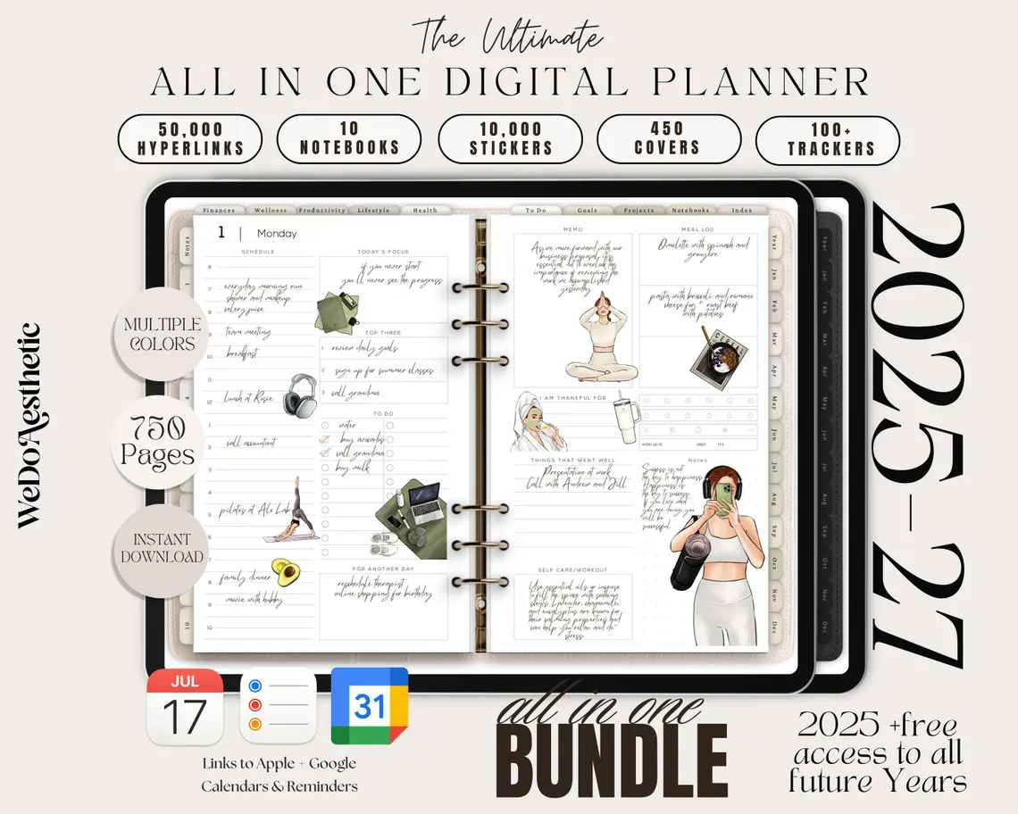 2025,2027 All-in-One Dated Digital Planner, Budget, Fitness, Notebook, Daily Planner, Goodnotes Planner, iPad Planner, Notability Planner