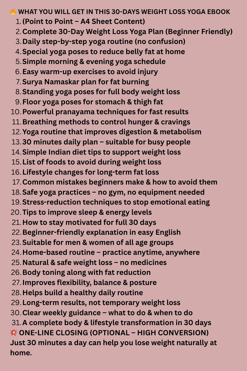 This ebook includes a simple daily yoga routine, powerful breathing exercises, belly fat reduction poses, and easy Indian diet tips. Just 30 minutes a day can help improve digestion, reduce stress, boost energy, and support healthy weight loss.